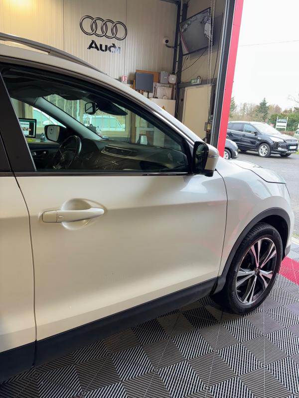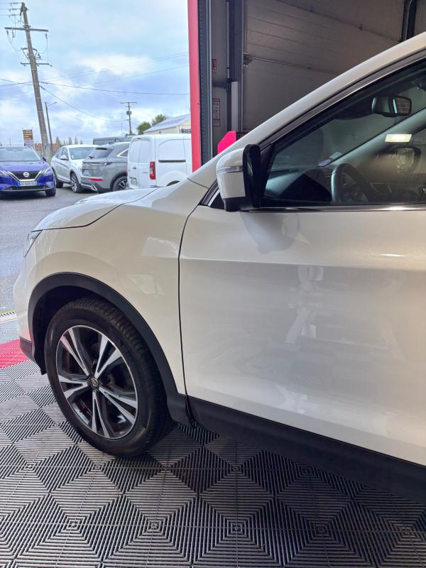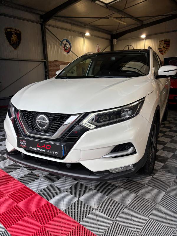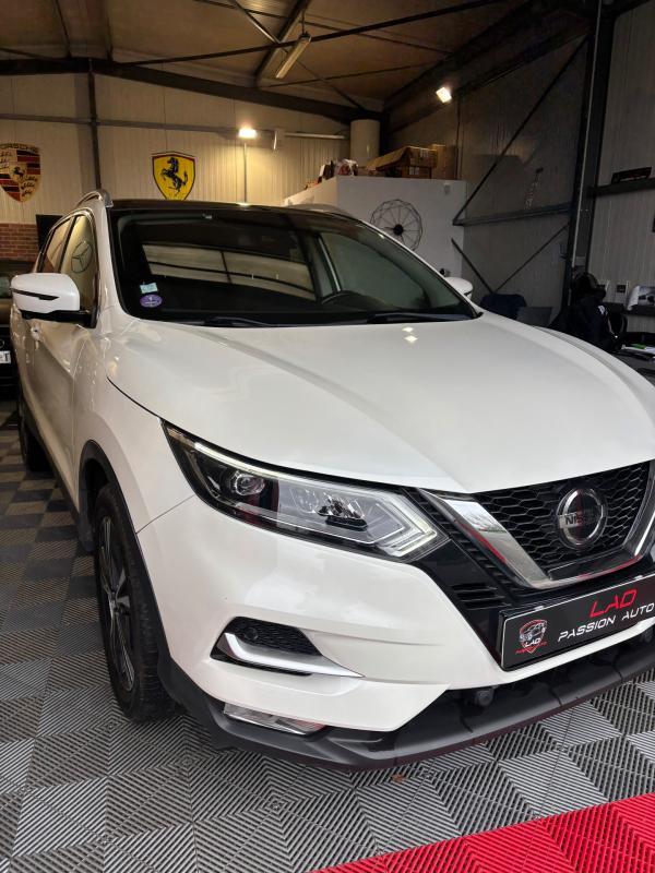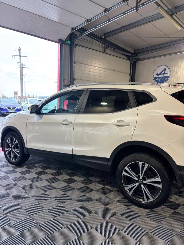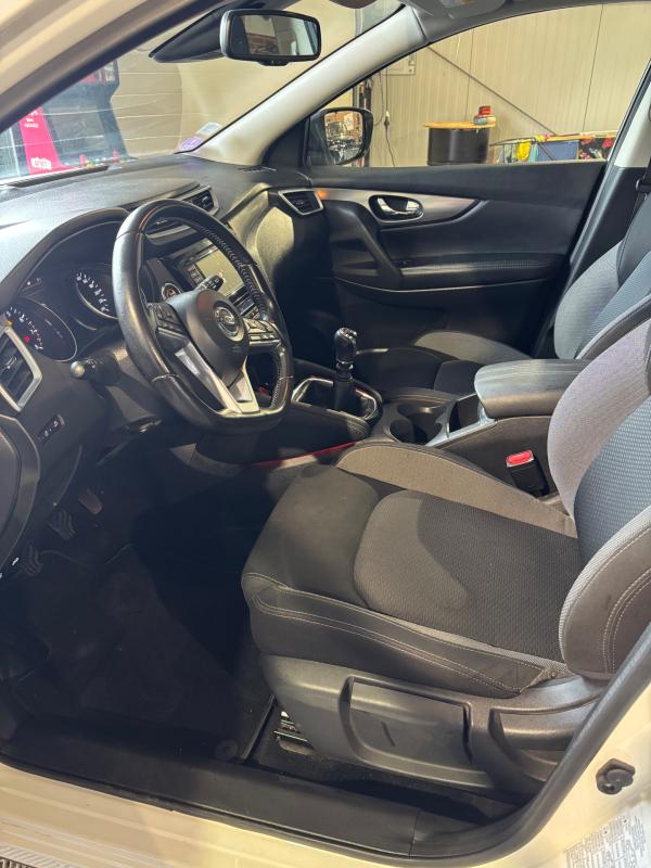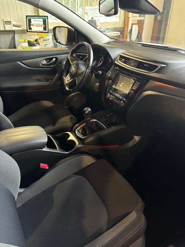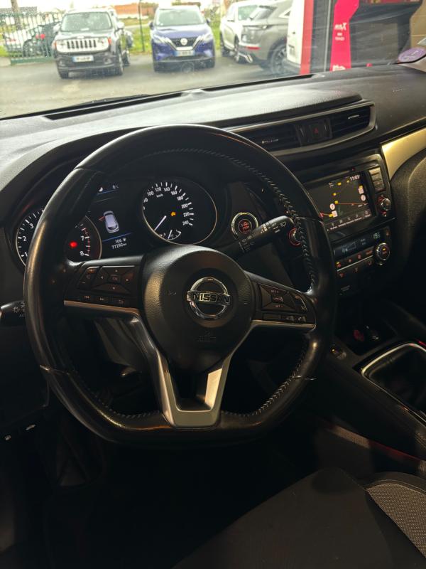 6 HP, ABS Systeme antiblocage des freins, Accoudoir central AR, Accoudoir central AV, Airbag passager deconnectable, Airbags frontaux, lateraux et rideaux, Allumage intelligent des phares, Antenne aileron de requin, Banquette AR rabattable 60/40, Camera de recul, Ceintures de securite AR 3 points a enrouleur, Ceintures de securite AV 3 points avec pretensionneur et limiteur d'effort, Ciel de toit gris clair, Climatisation automatique bi-zone, Commandes au volant (audio, Bluetooth, regulateur et limiteur de vitesse, controle de l'ordinateur, Contour des vitres laterales chrome, Direction assistee electrique ajustable (mode Sport ou Normal), EBD Repartiteur electronique de freinage, Eclairage d'ambiance interieur, ESP Controle electronique de trajectoire, Essuie-glace AV a declenchement automatique, Fermeture et ouverture centralisees des portes et vitres a distance, Feux AR avec signature LED et effet 3D, Feux diurnes a LED, Fonction Autohold (aide au stationnement/demarrage), Frein a main electrique, Inserts couleur argent pare-chocs AR, Inserts couleur argent pare-chocs AV, Inserts de porte et planche de bord en argent mat 3D, Jantes alliage 18", Kit de reparation pneumatique, NBAS Amplificateur de freinage d'urgence, Nissan Connect : Systeme de navigation multimedia avec ecran tactile couleur 7", Ordinateur de bord avec ecran TFT couleur HD 5", Pack Navi, Pack Securite, Pare-soleil cotes conducteur et passager avec miroir de courtoisie eclaire, Peinture opaque, Phares antibrouillard AV, Phares halogenes, Plancher de coffre modulable - 16 combinaisons, Poignee interieure d'ouverture porte chromee, Poignees de porte couleur carrosserie, Points d'ancrage de siege enfants ISOFIX a l'AR, Port USB dans accoudoir central AV, Porte-gobelets AR, Porte-gobelets AV, Prise 12V dans l'accoudoir central AV, Prise auxiliaire jack 3.5" dans accoudoir central AV, Radars de stationnement AR, Radars de stationnement AV, Radio digitale-Reception (DAB), Regulateur et limiteur de vitesse, Retroviseurs exterieurs a reglages electriques et degivrants, Retroviseurs exterieurs avec indicateurs de changement de direction a LED, Retroviseurs exterieurs couleur carrosserie, Retroviseurs exterieurs rabattables automatiquement, Sellerie Tissu Noir, Siege conducteur reglable en hauteur, Siege passager reglable en hauteur, Sieges AV "monoform style", Sieges AV avec reglage lombaire, Sieges AV sport "monoform style", Systeme "Chassis Control", Systeme antidemarrage, Systeme audio radio avec ecran tactile 7" avec interface personnalisable, Systeme audio Radio, CD/MP3, connexion USB, Systeme d'aide au stationnement : Camera AR avec reperes de gabarit, Camera AV, Cameras laterales si, Systeme d'ouverture et de demarrage sans cle "Intelligent key" (avec bouton START/STOP), Systeme de controle de la pression des pneus TPMS, Systeme de navigation NissanConnect, Systeme mains libres Bluetooth, Systeme Stop/Start, Vitres AV et AR electriques (avec mode impulsionnel), Vitres laterales AR et vitre de hayon surteintees, Volant et levier de vitesse gaines cuir, Volant reglable en hauteur et en profondeur, Camera 360°, Pack Design