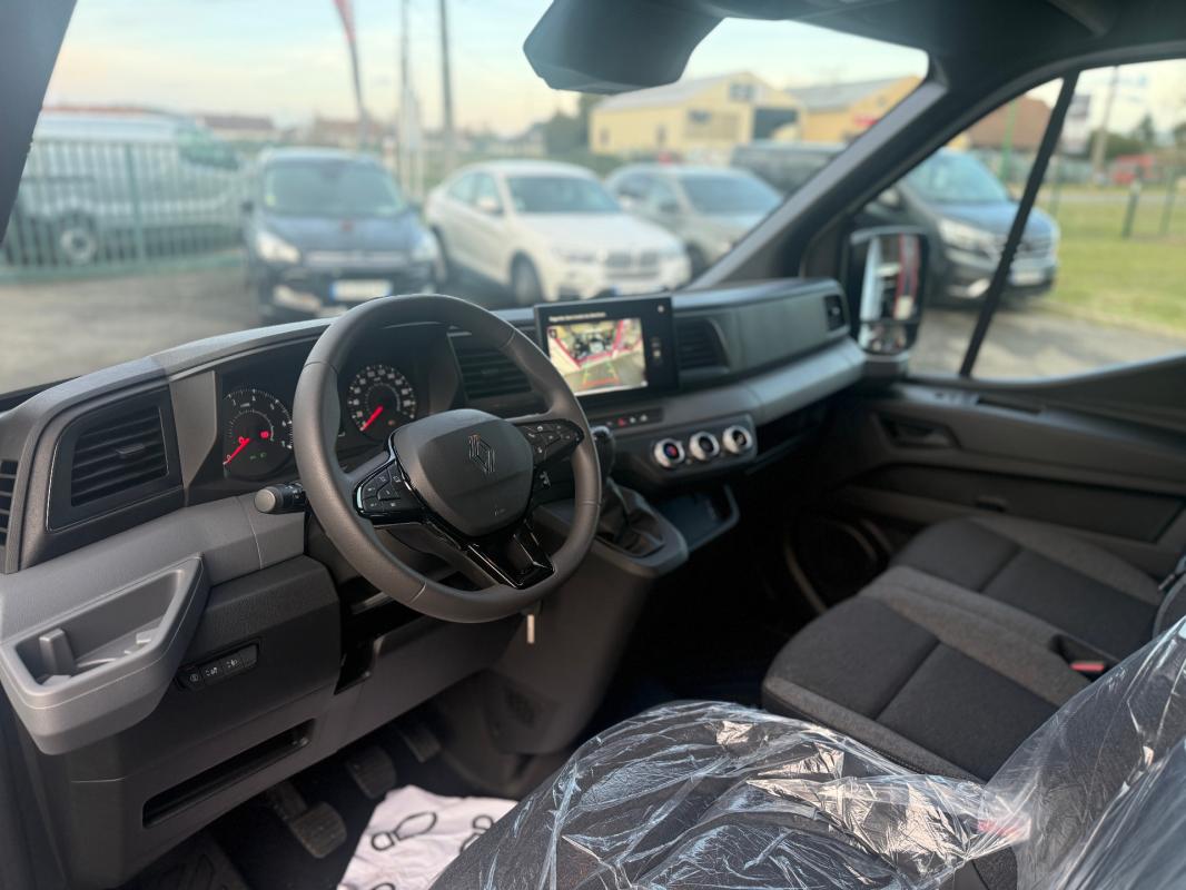 2 cles 3 boutons (1 repliable & 1 fixe), 6 anneaux d'arrimage au sol, pivotants et encastres (x4 au plancher & x2 cloison), ABS evec EBV, Aide au parking AR, Airbag frontal conducteur a retenue programmee, Alerte detection de fatigue, Alerte oubli de ceinture conducteur et passagers, Appel d'urgence, Assistance au freinage d'urgence, Assistant de maintien dans la voie, Banquette passager AV 2 places, Boite a gants tiroir Easy Life, Boite de vitesses manuelle 6 rapports, Boitier connecte AIVC, Camera ADAS, Ciel de toit noir, Climatisation manuelle, Cloison complete tolee, Combine d'instrumentation 3,5'', Condamnation centralisee des portes, Controle de traction (TCS), Controle electronique de trajectoire ESP, Critere de carrossage 2, Direction assistee, Eclairage de la zone de chargement halogene, Eclairage habitacle halogene, Enjoliveurs de calandre noir graine, Feux automatiques, Freinage d'urgence automatique AEB, Gestion de la vitesse (reconnaissance panneau limitation vitesse & prevention survitesse), Grille de calandre noir graine, Isolation cloison, Jantes tolees 16'' avec enjoliveur "airna", Kit de gonflage, Leve-vitres electriques (impulsionnel conducteur & passager), Maintenance connectee, incluse pendant 8 ans, Mise a jour systeme (via firmware over the air FOTA), inclus pendant 5 ans, Ouverture de porte AR independant, Pack Chrome Interieur, Pack controle a distance (via lapplication My Renault), inclus pendant 5 ans, Panneaux lateraux AR tolees, Planche de bord avec rangements ouverts, Precablage attelage, Predisposition ethylotest, Prise 12V habitacle, Projecteurs AV LED hors feux de route, Regulateur limiteur de vitesse, Retroviseurs electriques et degivrants, Sans habillage lateral interieur, Sellerie tissu chine gris fonce + cote d'assise conducteur renforce en textile enduit, Seuil de coffre, Siege conducteur reglable 6 directions avec reglage lombaire et accoudoir, Systeme de surveillance de la pression des pneus, Systeme multimedia openR link 10" (smartphone replication sans fil Android Auto & Apple CarPlay), Temoin d'usure des freins, Vitres teintees, Banquette passager avec rangement et bureau mobile, Camera de recul, Portes AR tolees ouverture 270°, Roue de secours normale, Kit bois complet